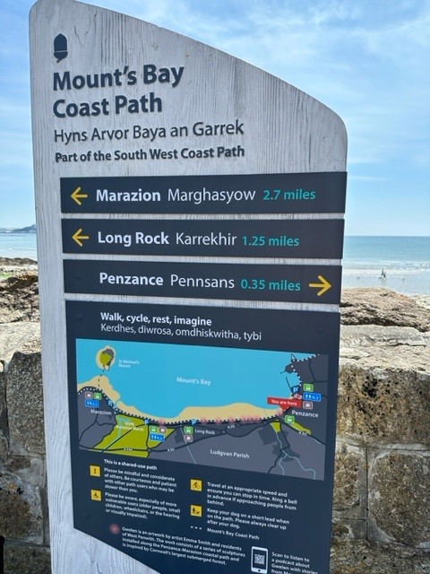 Wir hatten uns vorgenommen einige Abschnitte des South West Coast Path zu wandern und starteten mit einer relativ kurzen und flachen Tour zu Beginn, die eher einem Spaziergang glich. Diese Wanderung beginnt in der Stadt Penzance, im äußersten Südwesten Cornwalls. Sie führt entlang des Strandes zum St. Michael’s Mount. Diese einzigartige Insel mit Burg ist bei Ebbe durch einen Damm und bei Flut durch eine Fähre mit dem Dorf Marazion verbunden und kann besichtigt werden. Mounts Bay wurde zu einer der schönsten Buchten der Welt gekürt, und es ist nicht schwer zu erkennen, warum, denn die Aussicht auf St. Michael’s Mount ist atemberaubend. Einen großen Parkplatz findet man am Hafen „Harbour Long Stay Car Park“ Wenn man keinen Rundweg laufen möchte, kommt man sehr unkompliziert mit dem Bus zurück.