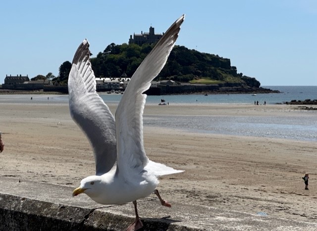 Auch hier hatten wir das Glück Seehunde in der Bucht zu entdecken. Nach Verlassen der Bucht kommt man am „Hell´s Mouth Coffeehouse“ direkt an der Straße bei Gwithian vorbei. Sollte man, wie wir ein Sandwich draußen essen, gilt besondere Vorsicht vor hinterlistigen Möwen, die imstande sind aus dem Flug heraus das Essen aus der Hand zu klauen. Meins konnte ich retten, habe mich aber extrem erschrocken.