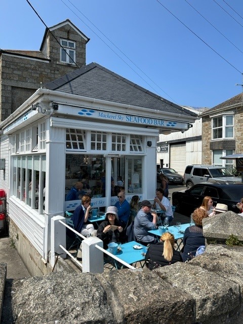 Der Hafen besteht schon seit Hunderten von Jahren und war bereits um 1400 in Betrieb. Im Laufe der Zeit wurde er erweitert, und in den 1880er Jahren wurden die riesigen Landungsbrücken gebaut, die heute den Hafen umschließen. Newlyn ist der größte Hafen für Fisch in ganz England und Wales, mit einer Flotte von heute über 200 Schiffen.Newlyn gefiel mir besser, gerade im Herbst und Winter stelle ich mir Mousehole etwas düster vor. In Newlyn empfehle ich für ein leichtes Mittagesssen das Restaurant „Mackerel Sky Seafood Bar“ https://mackerelskycafe.co.uk
