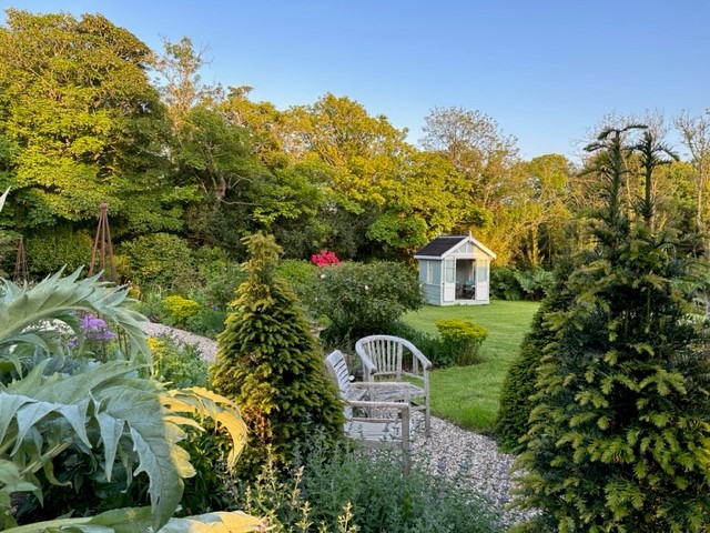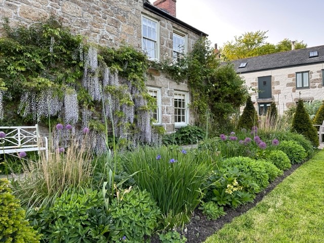Ein schönes, sehr gepflegtes und ruhiges Grundstück in voller Blüte. Elisabeth begrüßte uns sofort und wir betraten unser geräumiges Ferienhaus. Die Küche war perfekt ausgestattet, das Wohn- und Esszimmer gemütlich und die Terrasse einladend. Elisabeth hatte überall im Haus Vasen mit Blumen aus dem Garten aufgestellt. Im ersten Stock erwartete uns ein viel Platz bietendes Schlafzimmer mit Bad. Das Bett war herrlich bequem, die Handtücher weich und frisch. Da wir im Voraus E-Mails mit Tipps erhalten hatten, kauften wir bei den beiden erwähnten Bauernhöfen und nur wenig im Supermarkt ein. Frische Eier haben wir direkt bei Elisabeth gekauft. Die Lage ist ideal für viele Ausflüge zu malerischen Hafenstädten. Wir haben mehrere Spaziergänge entlang der Küste unternommen. Meistens haben wir auf einem der vielen National Trust-Parkplätze geparkt und sind nach der Wanderung mit dem Bus zurück zum Parkplatz gefahren. Am liebsten wären wir zwei Wochen geblieben, aber nach einer Woche reisten wir wehmütig ab, so wohl fühlten wir uns bei Mr. und Mrs. Harris. Nicht zu vergessen, dass ihr Hund Maisie uns oft besuchte und uns zum Lachen brachte, ein sehr liebenswerter Hund.