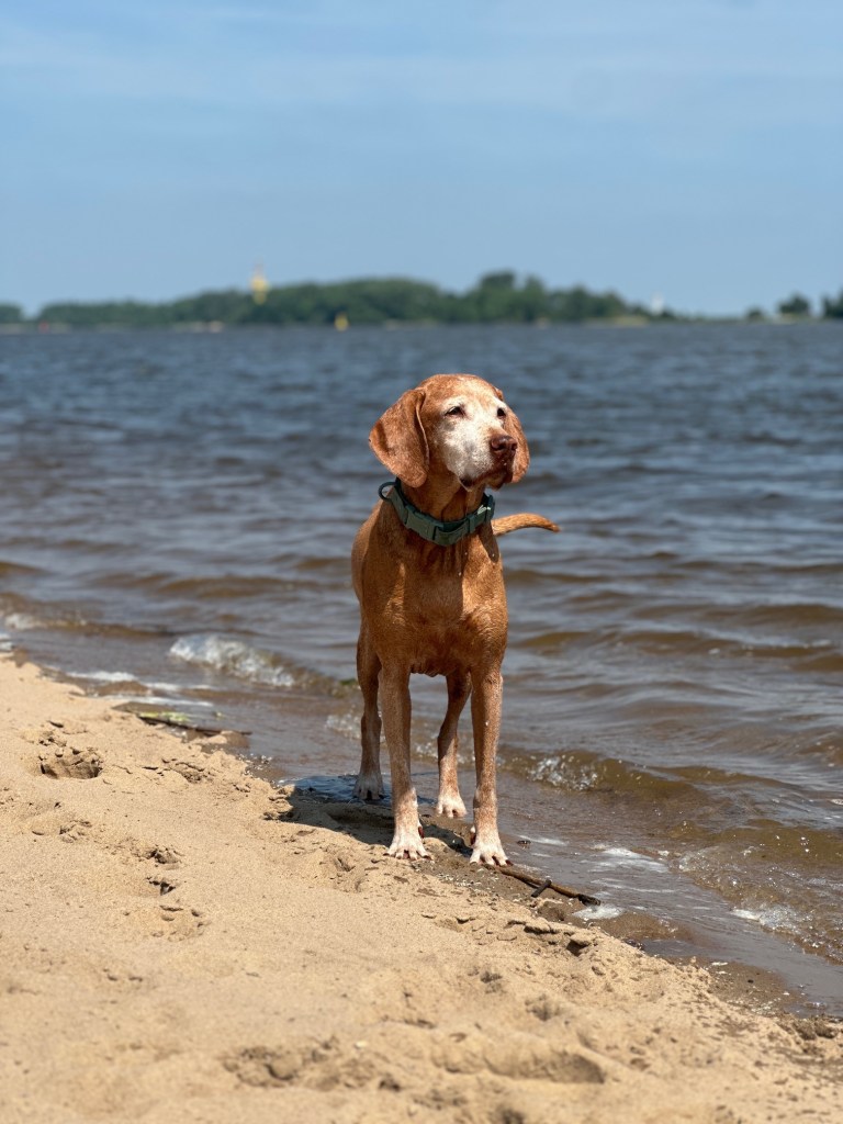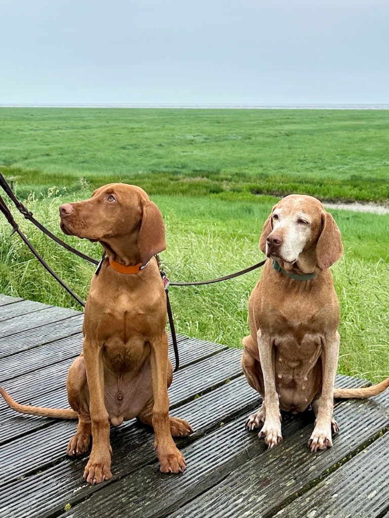 Mein Partner und ich waren auf der Suche nach einem Ferienhaus an der Nordsee, welches auch Hunde erlaubt. Seit Februar haben wir zusätzlich zu unserer Vizsla Hündin „Hazel“ noch einen Junghund „August“, daher planten wir einen Hundeurlaub. Bei der Suche nach einem Urlaubsdomizil verloren wir uns und landeten nicht in Sankt Peter Ording, weiter Richtung Sylt oder auf einer der Inseln, sondern im Jadebusen. Tatsächlich haben wir außer Acht gelassen, dass uns dort keine weiten Strände erwarten. Und vorab leider ein negatives Fazit; auch wenn die Gegend als hundefreundlich beschrieben wird, sind die Abschnitte am Wasser, welche den Hundebesitzern zugeteilt sind, ganz schrecklich. Ich war nicht nur enttäuscht, sondern entsetzt, dass ich eingegrenzt durch Bauzäune wie in einem Käfig am Strand geduldet werde. Und hiermit vergesse ich das traurige Thema auch gleich wieder.