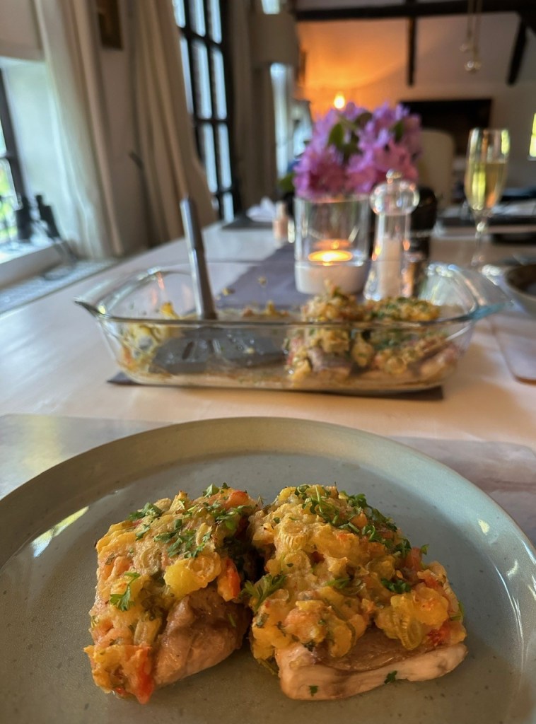 Nach entspannten Nachmittagen am Weserstrand konnten wir und die Hunde in unserem abgelegenen Ferienhaus direkt weiter die Seele baumeln lassen. Da wir beide Vollzeit berufstätig sind, bleibt oft abends nicht die Zeit entspannt zu kochen, obwohl wir es so sehr schätzen. Hier allerdings hatte ich die Möglichkeit in den vorhandenen Kochbüchern zu stöbern und raffinerte Rezepte heraus zu suchen. In der Küche des Reethaus-Jadebusen und überhaupt im ganzen Haus fehlte es an nichts. Unseren frischen Fisch kauften wir in Varel in der Mühlenstraße bei https://toellners-edelfisch.de/. Einmal gab es vorzügliche Kabeljaufrikadellen, einen anderen Abend Fischfilets mit einer Kartoffelkruste, z.B. Vom Esstisch aus konnten wir den Blick schweifen lassen. Es war fantastisch.