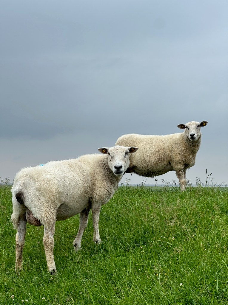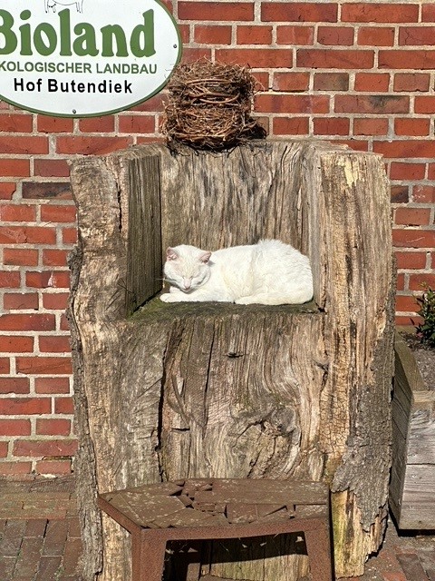 Am Nachmittag fuhr ich manchmal mit dem E-Bike noch zusätzlich die Gegend ab und packte was ging in meine Fahrradtasche. Ganz in unserer Nähe kaufte ich Käse, Eier, Joghurt, Quark und wenig Fleisch im Hof Butendiek https://hof-butendiek.de/mit eigener Hofkäserei. In der Hofkäserei mischen sie auch gerne Knoblauch, Paprika, frisches Basilikum, Bärlauch und Brennnesseln, knackige Walnüsse oder feine Gewürze wie Cumin, Bockshornklee und Schwarzkümmel in den Käseteig. Der Hofbauer lud auch gleich ein seinen Großbetrieb zu bewundern.