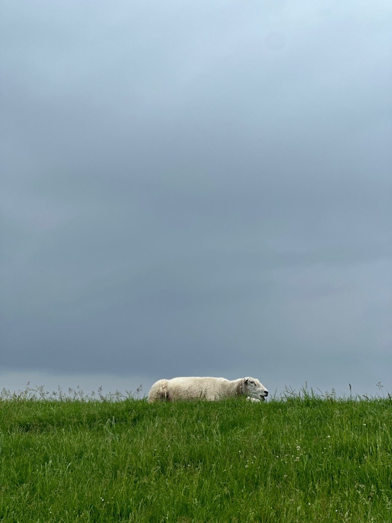 Unbedingt ergänzen möchte ich noch Eindrücke von Schafen die ich bei einem Spaziergang in Butjadingen – Langwarden bekam. Sonst würde auch etwas fehlen. Und dazu auch ein Ausflugsziel, der Langwarder Groden. Der Langwarder Groden zwischen Fedderwardersiel und Langwarden ist der beste Ort zur Vogelbeobachtung in Butjadingen. Ein 4 km langer Rundwanderweg und ein 2 km langer Naturentdeckungspfad bieten Naturerlebnisse der besonderen Art. Von mehreren Beobachtungsständen, Stegen und einer Brücke, die auf den Vordeich führt, lässt sich der ständige Wechsel zwischen Ebbe und Flut besonders gut überblicken. Ein Bohlenweg führt direkt hinein in 70 Hektar Salzwiesenentwicklungsfläche und ermöglicht so faszinierende Einblicke in die Tier- und Pflanzenwelt des Wattenmeeres. Eine ca. 35 m lange Holzbrücke führt über das erweiterte Sieltief.